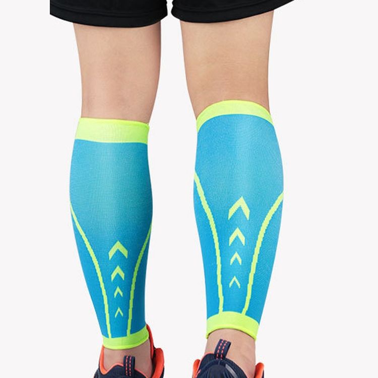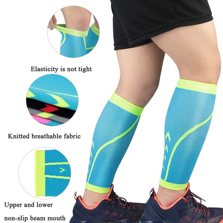 Sports Calf Cover Knitted Breathable Compression Leg Socks Basketball Football Running Protective Gear, Specification: L (Blue + green)